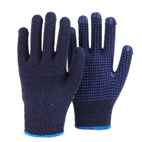 Blue PVC Polka Dotted Cotton Knitted Work Safety Gloves